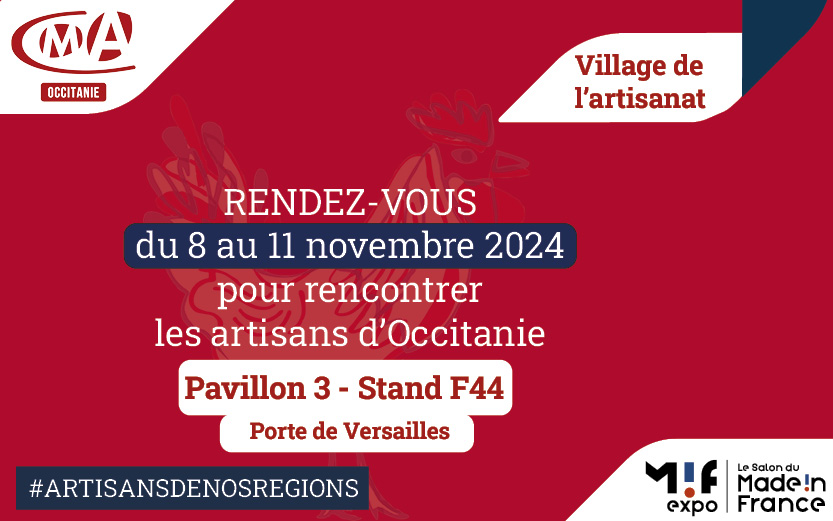 Le Salon du Made in France se tient du 8 au 11 novembre à Paris Porte de Versailles. Parmi les 1 000 exposants, 26 artisans de la région sélectionnés par la Chambre de Métiers et de l’Artisanat Occitanie, présenteront leurs savoir-faire sur le « Village de l’artisanat ».